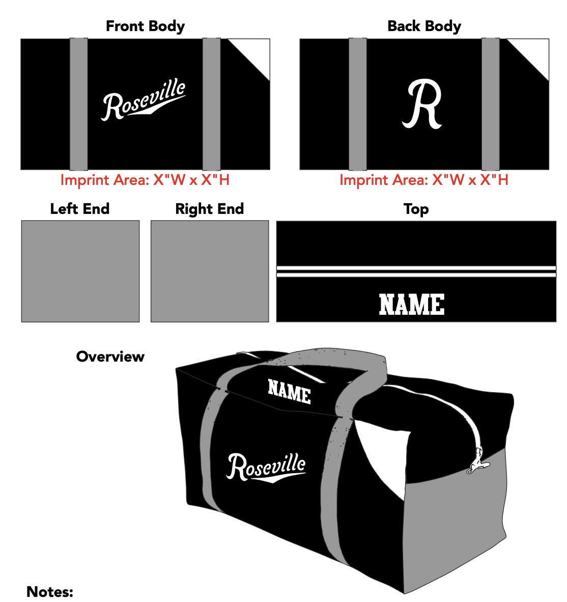 A Roseville hockey bag order is being put together. This is a new bag design for the 2025-26 season.